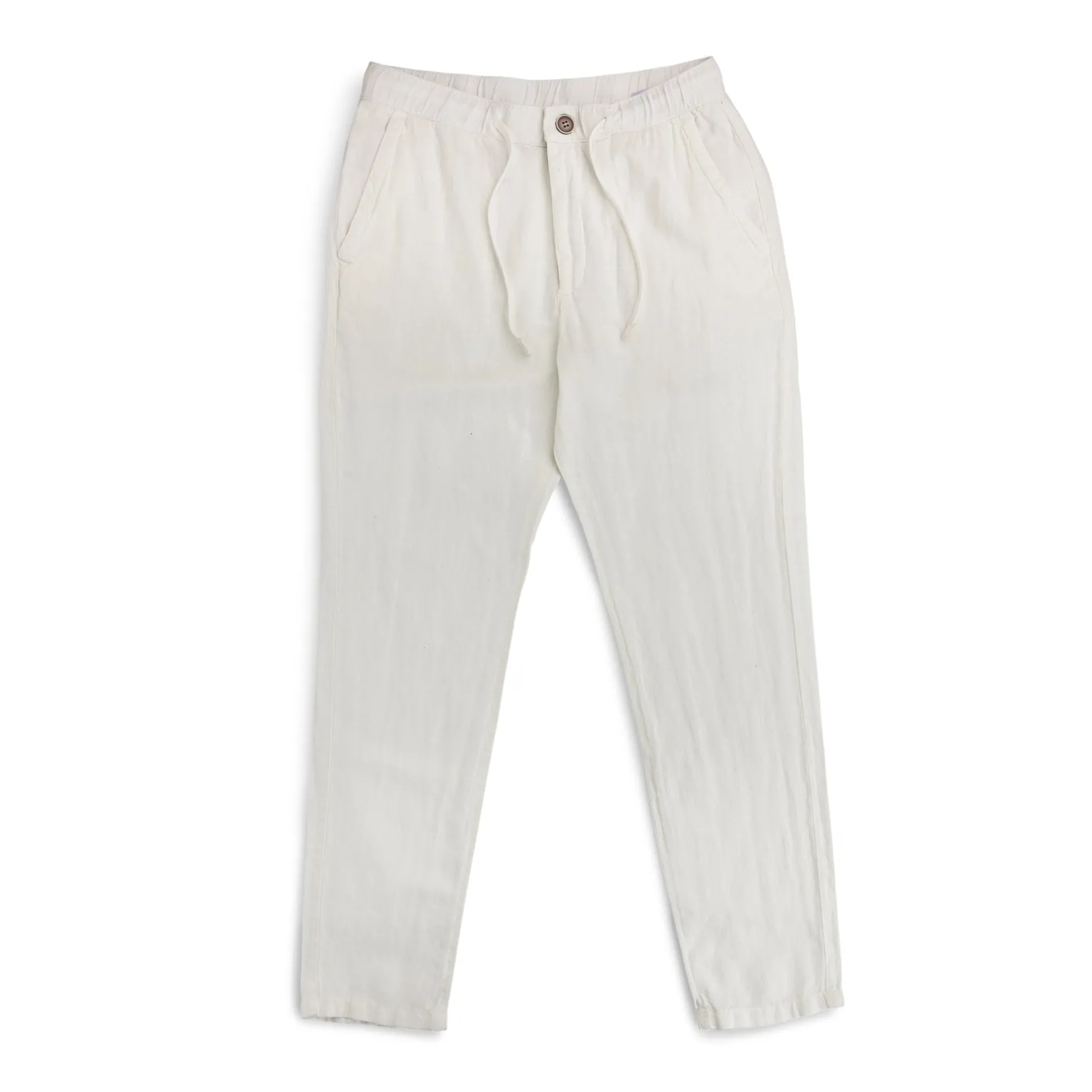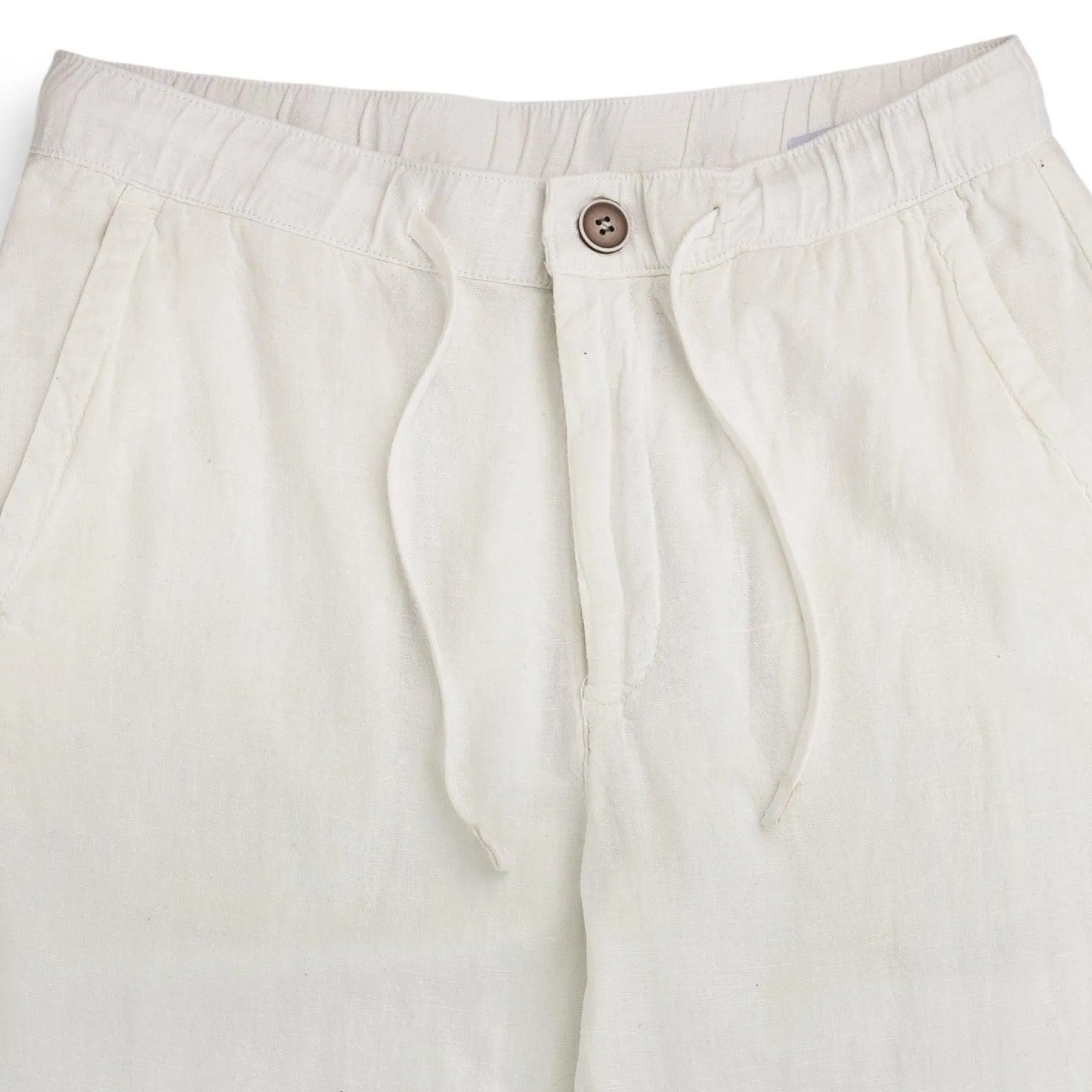 Fordelen med lin og bomull blanding er at buksen er lett og luftig, samtidig som den krøller mindre og er myk og behagelig å ha på seg.