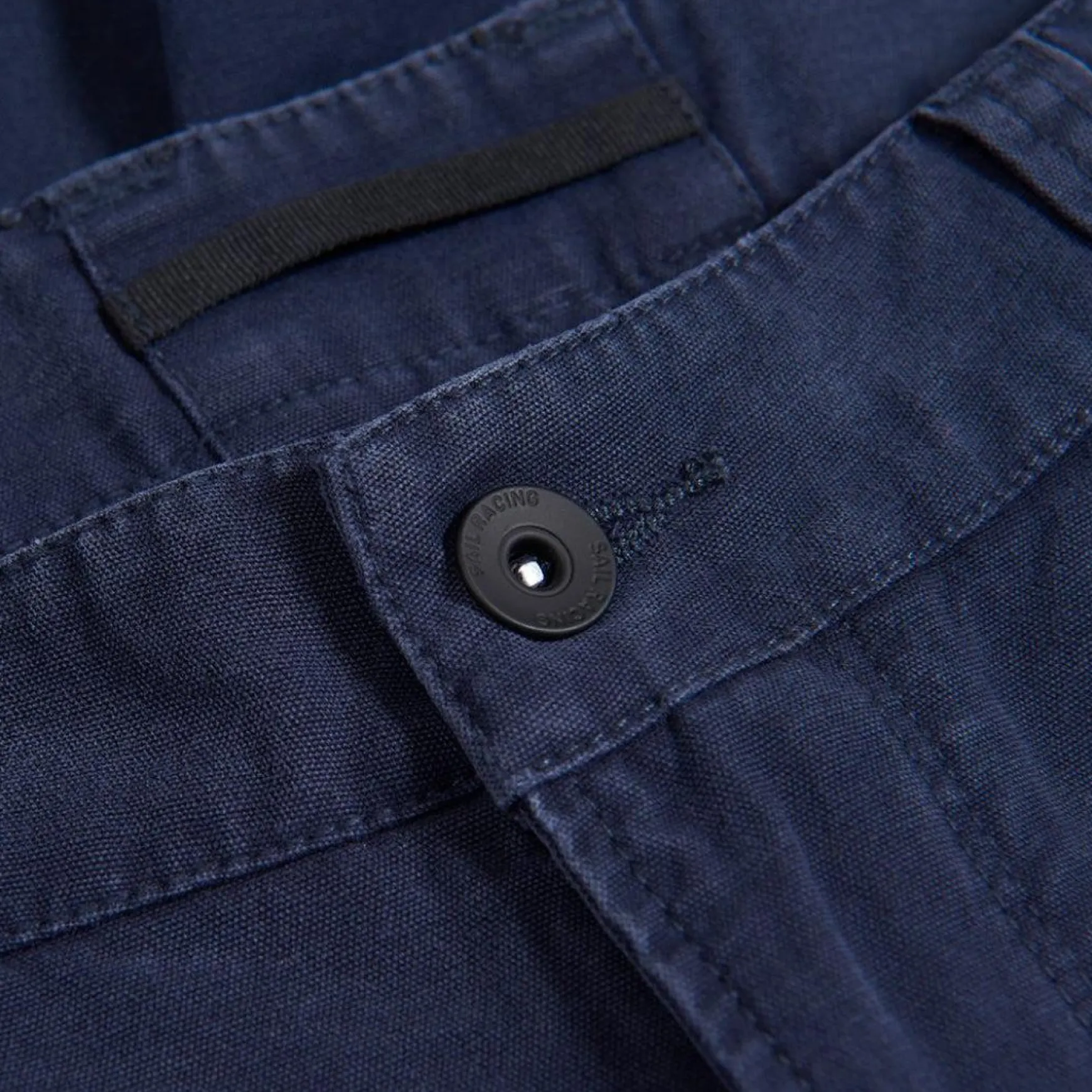 Brodert Sail Racing logo ved høyre baklomme. Bloc logo detalj på siden av høyre lår.